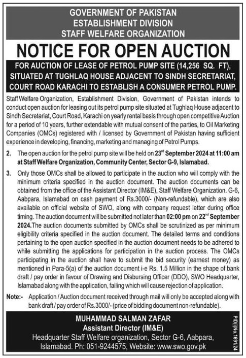 NOTICE FOR AUCTION OF LEASE OF PETROL PUMP SITE